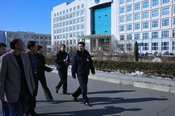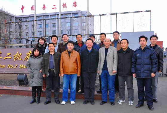 在齐二机床集团大门前,考察组一行合影留念。beats365考察组一行受到了齐二机床集团的热烈欢迎,百忙中的齐二机床集团董事长曲波亲自陪同考察。