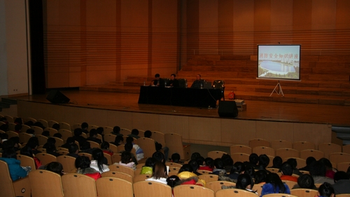“消防安全知识专题讲座”中,学校保卫处防火科科长梁力强为全体与会人员讲解了消防安全常识,并进行了现场演示,包括实验室(药品、防火、电器)安全,宿舍(防火、防盗、违章电器),交通安全(天冷路滑、机动车多、放假回家在路上),人身安全(社会治安,夜间行走),毕业生就业安全等,使近千名研究生受到了消防安全教育。