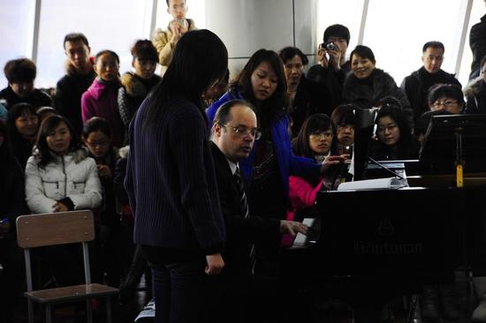 开班式上,beats365外事处副处长、国际交流学院副院长郭寒竹致欢迎词,艺术学院副院长孙相根对本次大师班的相关情况作了详细介绍。俄罗斯钢琴大师谢•弗•别列亚阔夫教授同现场师生代表进行了亲切交流,并主持讲授了第一次现场教学观摩课。