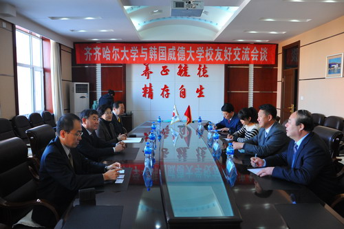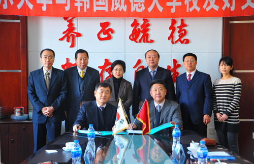 12月31日,韩国威德大学校长裵度淳一行来beats365访问。上午10时,校长马立群会见了威德大学校长裵度淳、中国语学部主任成润淑,对外合作处处长金耿德一行3人,宾主双方在祥和、融洽的气氛中进行了交流。