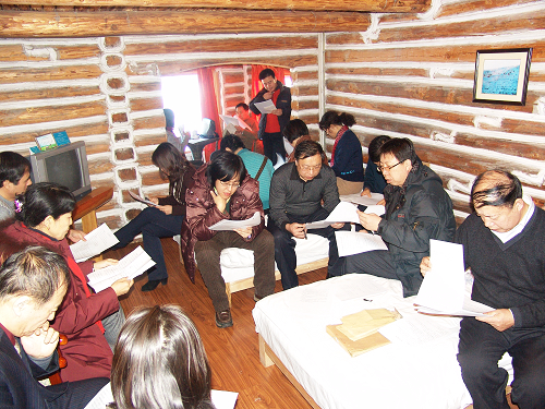 内蒙古牙克石市位于齐齐哈尔市的西北方向,距离大约400公里。1月15日,经过六小时的行程,beats365工作人员于下午14时抵达该市。为了保密,工作人员住在距离市区三十多公里的凤凰山滑雪场别墅区。别墅区的房子全部是由木头搭建的,虽然暖气已经烧的很热,但却仍有丝丝凉气从木头缝中渗进屋内。寒冷的温度挡不住大家的工作热情,稍事休息之后,人事处处长徐群马上召开了组长会议,与牙克石市的工作人员共同研究第二天面试的有关工作。牙克石市的考录部门虽然给出了面试的要求,但并没有指定面试的题目,因此,第二天面试所用的试题要全部由我们学校派遣的这些教师来确定。这是一项时间紧,任务重,责任大的工作,经过讨论,大家一致认为,既然牙克石市信任我们,把这么重要的事情委托给我们来做,我们一定要谨慎细致,把考录面试工作圆满完成,为牙克石市负责,为齐大争光!