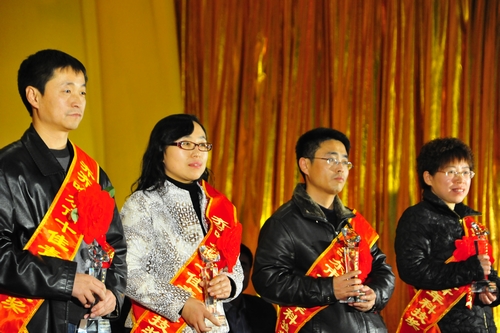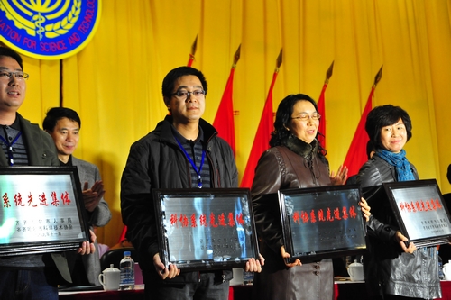 (李莉教授上台领市十佳青年科技奖,左二〔女〕)