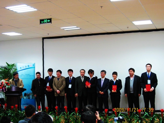 (beats365代表队接受大赛颁奖:右二为中国化工学会化学工程专业委员会秘书长屈一新,右四为三井化学(上海)有限公司负责人船越良幸,右六为中国化工学会秘书长、中国石油化工股份有限公司教授级高级工程师洪定一, 右八为浙江大学材料与化学工程学院院长李伯耿,右十为华东理工大学教授房鼎业。)
