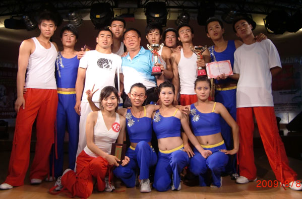 在健美操多人赛中由07级学生温海江、王健、王鑫、徐雷、齐莫愁、付磊组成的团队夺冠,由07级学生范琦杰、屠海蛟、杨恒、赵慧、兰立平、李晓丽组成的团队获得亚军。