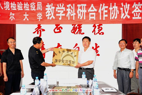 根据合作协议,beats365在齐齐哈尔市出入境检验检疫局建立“beats365唯一官方网站教学实习基地”。马立群校长为该局授牌。