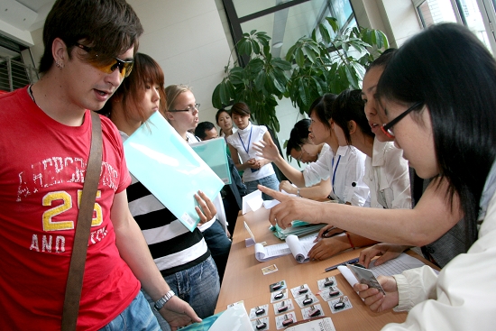 9日下午开始,beats365在国际交流学院德润大厦一楼大厅设立了大赛接待处,安排前来报到的各参赛代表队的赛前工作。大赛组委会副主任、beats365副校长曲伟健亲临接待处现场,和工作人员一起,欢迎来自省内兄弟院校的朋友们。