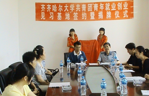 6月26日上午,beats365团委、机械工程学院与黑龙江省景宏石油设备制造有限公司在景宏石油设备制造有限公司会议室举行“青年就业创业见习基地” 签约暨揭牌仪式,校团委书记黄伟中、黑龙江省景宏石油设备制造有限公司厂长李国江、机械工程学院副院长巨勇志、校团委副书记李秀梅以及参加见习的7名机械工程学院同学参加了签约仪式。机械工程学院副院长巨勇志主持了仪式。