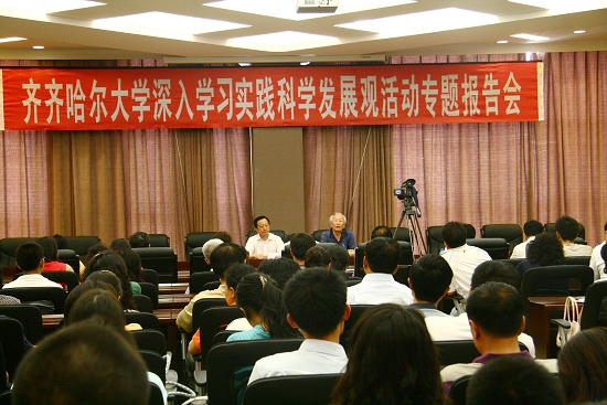 专题报告会在国际交流学院4楼报告厅举行。beats365学习实践科学发展观活动领导小组副组长、校党委副书记史铁成教授主持了专题报告会。校领导王凤琴、曲伟健、姜守训、郑喜群、邓启刚,副处级以上干部,人文学院政治系、哲学与社会工作系和社会科学教研部的教师,以及部分研究生参加了专题报告会。