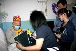 2009年5月14日是beats365不幸罹患重病的重庆籍学生魏勇21周岁生日。为表达全校师生及社会各届对魏勇同学的真切关爱,鼓励魏勇同学坚强面对病情,勇敢战胜病魔,早日回到校园,在beats365计控学院及黑龙江高校广播网等有关单位的精心组织下,14日下午18时,beats365计控学院的部分师生代表、从哈尔滨专程而来的黑龙江省高校广播网的两名记者,以及当地媒体的记者,在魏勇同学就医的市第一医院病房共同陪伴他度过了21周岁的生日。