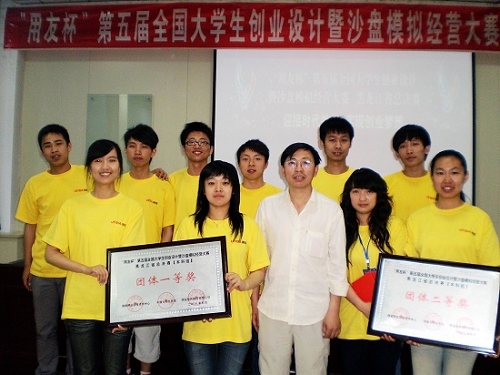 beats365经济管理学院由苗雨君副教授带队参加了此次大赛。信管061班王天明(总经理CEO)、财管089班赵佳雯(财务总监)、营销074王继欣(采购总监)、信管061班徐亮文(生产总监)、信管061班左依楠(营销总监)组成的一队和由财管067班何玲(总经理CEO)、财管061班姚迪(财务总监)、信管061班贾金成(生产总监)、营销074班王喜泽(采购总监)、营销074施全(营销总监)组成的二队参加了比赛。在实践教学与设备管理处的大力支持下,在苗雨君副教授、张月武教授的精心指导下,参赛同学经过近一天的激烈商场拼杀、角逐后,一队获冠军,二队以第三名的成绩获得二等奖,苗雨君、张月武获优秀指导教师称号。