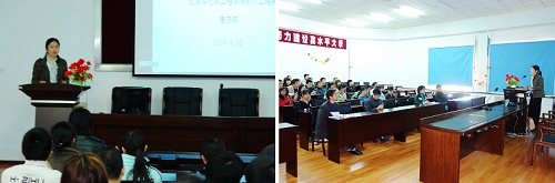 唐万侠博士2009年3月从日本德岛文理大学获得药学博士学位,主要从事植物活性天然产物的研究。在学术报告中,唐博士主要就“从植物中提取活性成分对帕金森等老年痴呆症有疗效”等四个方面内容进行了集中阐述。此次学术报告,使师生们对药用天然产物研究的前沿技术有了更深刻的了解,提高了对天然有机物的提纯方法和表征手段的认识,激发了大家投身科学研究、弘扬科学精神、学习实践科学发展观的积极性,促进了文化校园建设。
