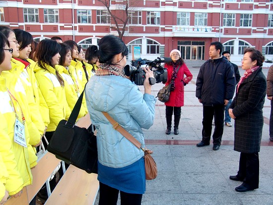 本次志愿服务工作的领队——团委冯占元老师及部分志愿者代表接受了媒体的采访。