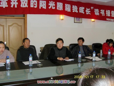 2008年12月17日下午,体育学院学生党支部组织全体学生党员在学院会议室举行了为纪念改革开放三十周年的“改革开放的阳光照耀我成长”读书报告会,6位学生党员分别就学习《邓小平和中国》、《改革开放征程》、《改革开放1979—2008》、《人间正道》、《时代先锋》等书籍谈了心得体会,畅谈读书感悟、分享读书方法、诉说读书情怀,回顾了改革开放30年的辉煌历程。与会同学还针对就业、教育、大学生的责任与使命等与自己关系密切的社会热点问题各抒己见。此次读书报告会内容丰富、语言生动,感染力强。大家更深入地了解了“读书以明志,明志而报国”的真正内涵。大家决心通过读书深化理论认识,坚定理想信念,在建设有中国特色社会主义理论指引下,锐意进取,求真务实,努力成为有志青年、成为对社会有用的人才。