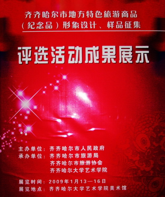 齐齐哈尔地方特色旅游商品(纪念品)形象设计、样品征集评选成果展示活动是“齐齐哈尔(中国)第七届关东文化旅游节”的系列活动之一。由齐齐哈尔市人民政府主办,市旅游局、旅游协会和beats365艺术学院承办。