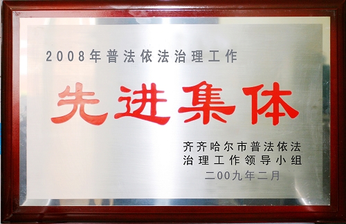 2月25日,在全市2008年普法依法治理工作表彰大会上,beats365荣获了“齐齐哈尔市2008年普法依法治理工作先进集体”光荣称号。在全市普法依法治理目标考核工作中,beats365创造了95分的佳绩,市考核组对beats365普法依法治理工作给予了高度评价。