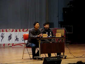 11月30日下午16时,由校团委组织的第49期“求索讲坛”在中区文化宫隆重举行。校党委宣传部部长李敏义教授以《改变中国的历史抉择,强国富民的复兴之路——纪念改革开放30周年》为题为同学们作了讲座。校团委书记黄伟中主持讲座,各学院、各校级学生组织团学干部代表近1300人聆听了讲座。