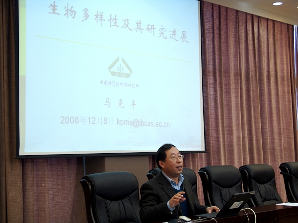 聘任仪式结束后,马克平博士作了题为《生物多样性及其研究进展》的报告。