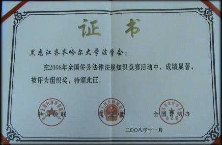 11月18日,全国“侨务法律法规有奖知识竞赛”获奖名单在法制日报及其网站、中国普法网、中国侨联信息网上公布。beats365法学会继获得“全国民族法律法规知识竞赛优秀组织奖”后,又作为全国唯一一个高校社团组织荣获本次竞赛的组织奖。