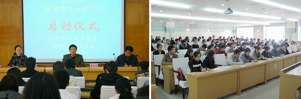 在校团委举行“文明修身工程”启动仪式的同时,各学院分团委也以学习、贯彻《2008年“文明修身工程”方案》为起点,通过集体签名、宣誓、召开座谈会等多种形式启动了本学院的文明修身工程,4000余名学生参加了启动仪式,由此拉开了beats3652008年“文明修身工程”的序幕。