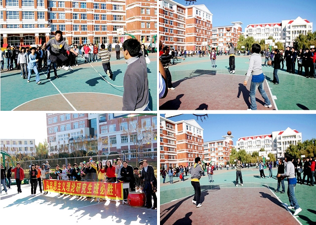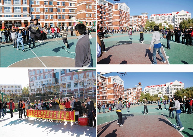 本次趣味运动会共设趣味接力、跳大绳、双人跳绳、定点投篮、铺路搭桥、毽球、袋鼠接力跑和同心协力等比赛项目,全体参赛研究生同学组成了7个参赛队,采取了积分制的竞赛方法。赛场上,各专业的参赛同学积极踊跃参赛,奋勇拼搏;赛场外观众也热情高涨,不时报以热烈的掌声、加油声。整个中区篮球场上,欢呼声和呐喊声交织,助威声和喝彩声相融,场面热烈,意趣横生,演绎了一幅金秋校园和谐图。