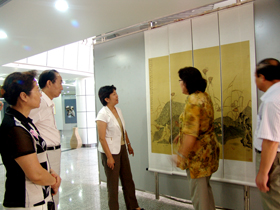 在美术馆,尹晓岚观看了正在该馆展出的由beats365师生创作的美术作品,并听取了艺术学院领导的相关介。