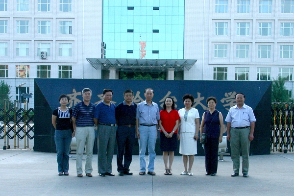 访问结束后,校领导同来访的校友及省市领导在西区校门前合影留念。