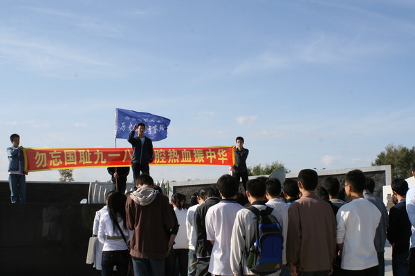 历史071班李春龙同学代表历史系全体同学宣誓,表示要“永远记住这段刻骨铭心的历史,以实际行动振兴中华!”充分表达了当代大学生不忘国耻、发奋图强、振兴中华的决心。他慷慨激昂的演讲,深深地感染了在场的每一个人,最后,历史系同学们齐唱国歌,向“九·一八”罹难同胞默哀,向奋起抗争的抗战英雄们致敬。人文学院团委书记袁冰岩表示:历史系2006、2007级同学以纪念“九·一八“活动为契机,共同来到和平广场,回顾历史,缅怀先烈,抒发爱国之情,树立报国之志,寓教育于活动之中,收到了很好的效果。