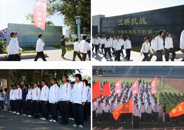 9月17日上午8时,人文学院历史系2006、2007级全体同学来到和平广场举行悼念仪式缅怀革命先烈,纪念“九·一八事变”七十七周年。同学们集体参观了和平广场。一组组的碑刻,让同学们仿佛置身于几十年前的江桥抗战之时,穿梭在77年前的枪林弹雨中,感受着前辈们“抛头颅、洒热血”的英雄壮举,体会着先烈的爱国情怀。