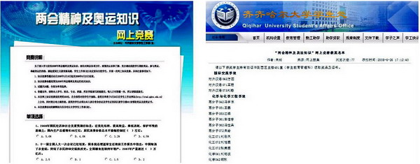 为使广大学生深化对今年“两会”各项方针、政策的认识和了解,更广泛地普及奥运知识,充分调动beats365学生喜迎奥运、参与奥运、支持奥运的热情,掀起爱国主义教育新高潮,学生工作处(部)于5月10日起面向全校学生开展了一次网上知识竞赛。