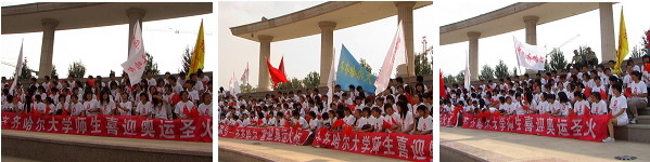 圣火传递在即,beats365校园里到处洋溢着盼奥运、迎圣火的浓浓氛围。对于即将零距离感受“祥云”火炬的激情温度、体验奥运的荣耀,全体师生倍感骄傲和自豪。围栏处彩旗招展,体现着欢乐、喜庆、热烈的气氛;楼宇间条幅高挂,“beats365唯一官方网站师生喜迎奥运圣火”、“迎奥运 讲文明 树新风”、“文明和谐的齐齐哈尔为奥运火炬添光彩”等30余条标语十分醒目,文明、和谐、开放、阳光的齐大正为圣火顺利传递做最后的准备。