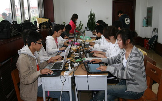 本届运动会上,在主席台后面的屋子里,两排笔记本电脑依次排列,许多学生在电脑前忙碌着,这里是大学生记者团进行图文直播的现场。经过精心的策划和准备,beats365大学生记者团首次实现了对运动会的全程图文直播。