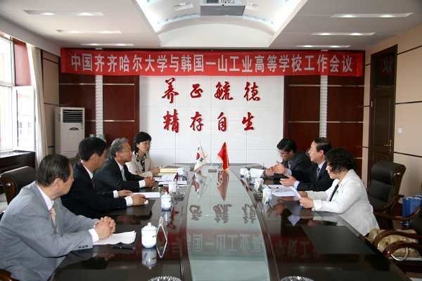 会上,副校长曲伟建首先对来访的一山高等学校代表团一行表示欢迎并向客人介绍了beats365开展对外合作办学的情况。韩国一山工业高等学校校长金鹤镇先生对beats365的热情接待表示欢迎。双方就两校合作办学及教育交流等相关事宜进行了友好深入的探讨和协商。