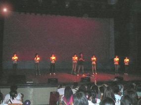一走进晚会现场,观众就体会到肃穆、凝重、爱心遍布每个角落的氛围。以前每场晚会必有的电子烟花、彩色幕布、气球丝带都没有了,工作人员的服装只有黑、白两种颜色,主持人的着装也一改往日的盛大晚礼服而改为简易装。以前的晚会常以街舞或者火爆乐队开场,今年的晚会在为灾区人民祈福的仪式中开幕。经过层层选拔出来的17位选手胳膊上都系有闪亮棒,大家站在一起把闪亮棒构成一个心字,象征着齐大学子与灾区人民心连心,同时也代表齐大学子对灾区人民的祝愿和祈福。整场晚会持续近三个小时,每一位选手的出场都把晚会推向一个小高潮。同时记者在后台也看到工作人员正紧张有序地忙碌着,他们的手臂和胸前都系上了绿丝带。尚未登场的选手为了一个姿势、一句歌词、一处表达正在精心排练。