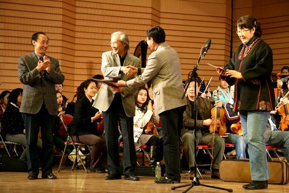 指导活动结束后,卞祖善先生欣然接受了beats365的聘请,担任beats365交响乐团名誉指挥、beats365艺术学院客座教授。校长唱江华,校交响乐团团长、校工会主席吕晓辉分别向卞祖善先生颁发了聘书。在热烈的掌声中,卞祖善先生和在场师生亲切合影留念。