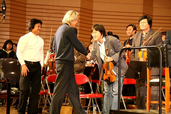 此前,卞祖善先生正在哈尔滨歌剧院开展艺术指导工作。当他得知在省会哈尔滨之外,还活跃着一支优秀的业余交响乐团,他非常高兴,特意利用短暂的休息时间到beats365访问,看望并亲自指导beats365交响乐团。