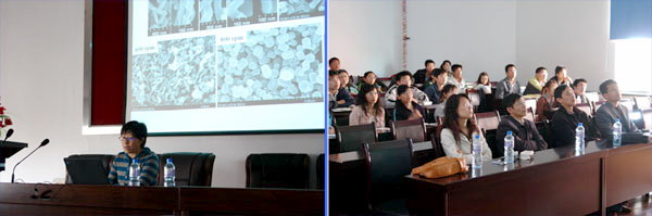 报告会上,靳海英博士对同学们提出的有关问题进行了解答,与师生进行了交流。此次学术交流活动,拓宽了同学们的视野,激发了同学们对介孔材料研究的兴趣。她的成长、成才经历也增强了同学们进行科学研究、进取成才的信心。