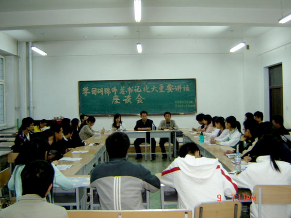9日晚,beats365学生邓研会在西主248室举行了学习胡锦涛总书记北大重要讲话精神座谈会。校邓研会学生干部、各学院邓研会分会会长以及学习骨干40余人参加了学习座谈会。