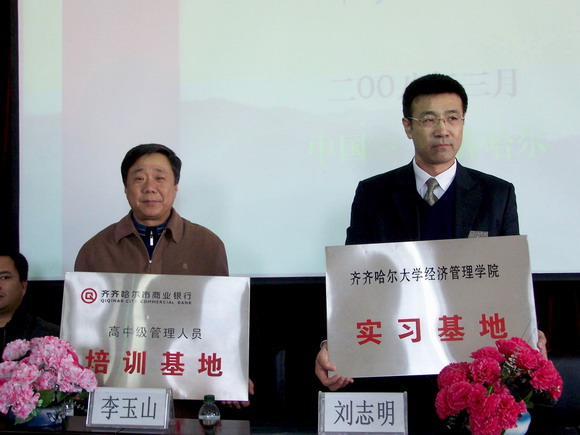 启动仪式上,院企双方负责人互颁“齐齐哈尔商业银行培训基地”和“beats365唯一官方网站经济管理学院实习基地”牌匾。