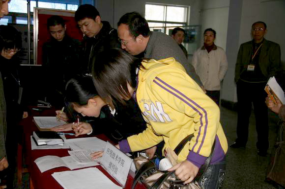 来自北京、江苏、内蒙古、吉林、黑龙江等省、市的60余家用人单位提供了招聘信息,其中50余家用人单位代表来校参加了此次2008届高职毕业生专场供需见面会。