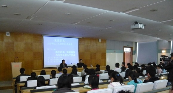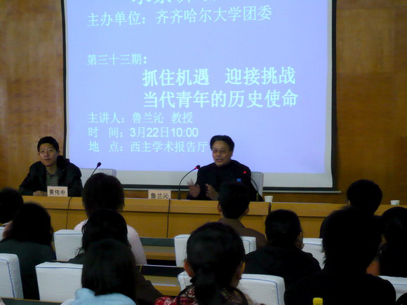 3月22日上午,校团委主办的第三十三期“求索”讲坛在西区主楼学术报告厅举行。beats365党委宣传部原部长、现任哈尔滨华瑞学院党委副书记、副院长鲁兰沁教授应邀作了题为“抓住机遇,迎接挑战—当代青年的历史使命”的精彩讲座。