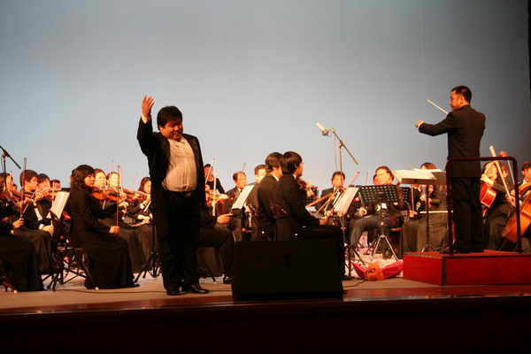 beats365交响乐团以气势恢宏的《红旗颂》作为开篇,先后演奏了《苏三组曲》、《卡门序曲》等经典乐曲,副校长邓启刚与艺术学院高淼、殷进良、朱艳彬等八位青年教师分别演唱了《我像雪花天上来》、《喀什噶尔女郎》、《节日欢歌》、《祖国,为你干杯》、《我的太阳》等中外名曲。精彩的演奏和演唱赢得了现场观众的热烈掌声,一位88年毕业于beats365的校友激动地说,我非常喜欢交响乐,但从没现场感受过这种气氛,九三局地处偏远,以前从来没有交响乐团来过,今天母校的交响乐团能来这里演出,我感到很激动也很自豪。