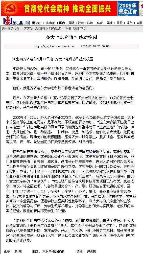 (2006年5月10日《鹤城晚报》的报道)