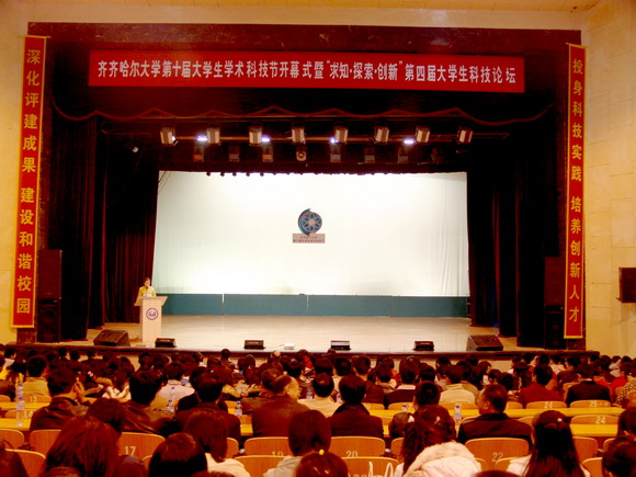校党委副书记王凤琴、副校长姜守训出席开幕式暨“求知·探索·创新”第四届大学生科技论坛;此次大学生学术科技节组委会成员及学生代表千余人参加了此次活动。