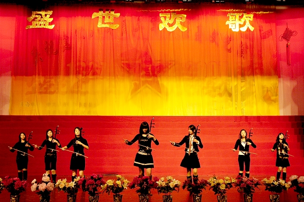 从10月23日至11月5日,艺术学院音乐表演系近百名师生在系主任包明德等指导老师的带领下,先后深入到齐市十七中、铁锋区供电局、65447部队、65448部队、民族中学与朝鲜中学、梅里斯达翰尔族中学、杜尔伯特红旗小学等单位,为企事业单位职工、中小学师生、军营官兵、少数民族同胞、社区和农村群众连续演出11场,在龙江大地上掀起了一股如火如荼的文化热潮。师生们用自己扎实的基本功、精熟的业务素质和高水准的演出效果为各界观众送去了一场又一场精彩的文艺节目,充分展现了新时期新一代文艺工作者的精神面貌,体现了beats365在不断推进教育教学改革、深入开展素质教育中所取得的丰硕成果,表现了beats365唯一官方网站努力服务地方经济文化建设的决心与行动。