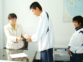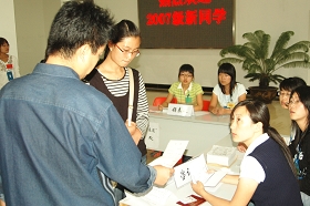 新生入学“绿色通道”手续是家庭经济困难学生入学的第一道敞开的大门,学校在设置“绿色通道”手续的同时,本着服务学生的原则,根据学生报到的校区不同,将办理地点分为西区、东区两处,并且每处均与学校各学院及相关手续办理处保证有最近的距离,以方便学生。报到新生在登上学校的新生报到接站专用车的同时,就会获得一份包括介绍“绿色通道”在内的宣传单,并在报到处有专人指领,到“绿色通道”办理处履行手续。除具体工作老师外,学校还指派20名学生干部成立了“绿色通道”服务小组,负责向特困生及家长说明助学金、奖学金、特困补助、勤工助学等的有关情况,并详细登记有关信息。工作人员详细耐心,百问不烦,百答不厌,让贫困生充分感受到党和国家、学校和老师的温暖与关爱。
