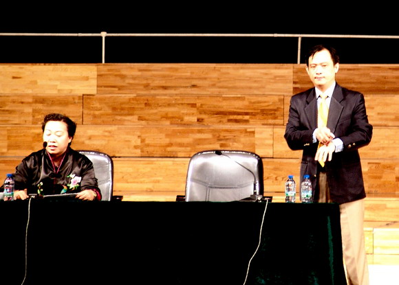 容纳千余人的音乐厅座无虚席,学生指导中心主任李迎春主持了讲座。