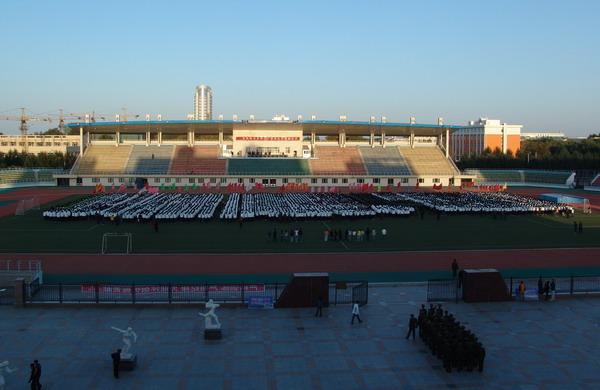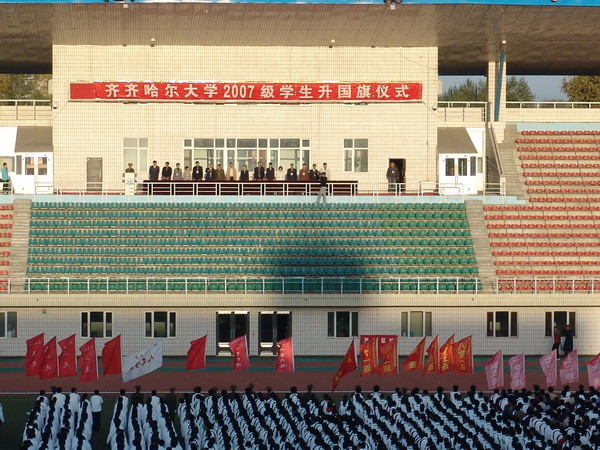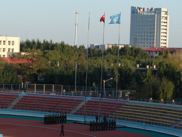9月24日6:20,在beats365西区体育场举行了新生军训项目之一的爱国主义教育活动——升国旗仪式。5800余名07级新生参加了升旗仪式。