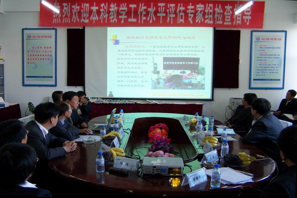 下午4:00,章跃教授来到经管学院,与学院有关领导进行了座谈。学院党委书记李玉山代表学院作了题为“抓住评估机遇,加快学院发展建设”的教学评建主题汇报。他从学院的基本情况、教学工作思路、教学工作的主要成就及存在问题与整改措施等四个大的方面,详细汇报学院几年来教育教学工作取得成绩和存在的问题,并就学院发展进行了展望。章跃教授听得仔细,看得认真,一边听还一边认真记。听完汇报后,章跃教授就学院招生情况、各专业的就业率、实验室建设、学生工作及教评的有关问题向与会同志进行了询问。