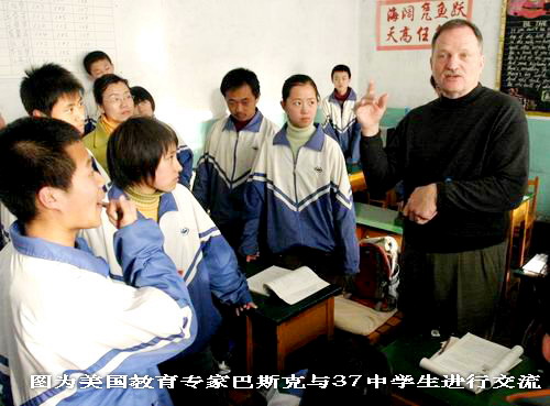 在结题会议期间,与会人员共同观摩了美国教育专家巴斯克教授与第三十七中学学生运用双语教学的实践示范课。外籍教授巴斯克先生在课堂上与学生进行了交流与互动,收到了较好的教学效果,特别是第三十七中学学生们在双语课堂上的出色表现,赢得了与会专家的一致好评。