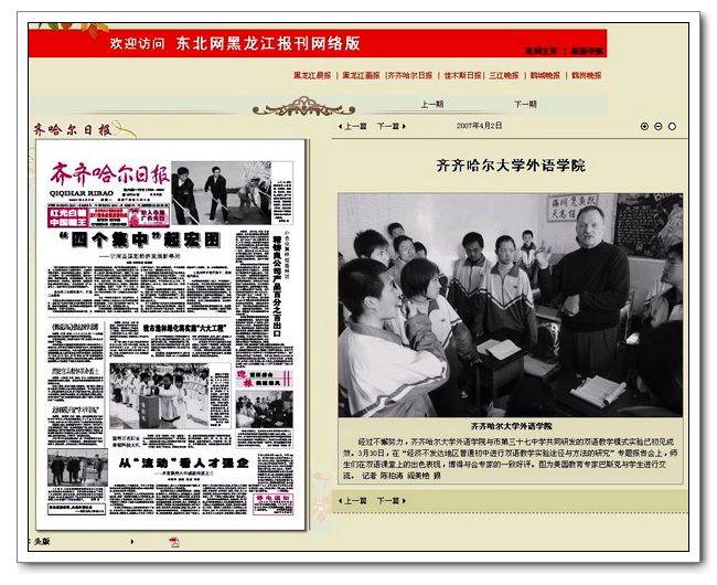2007年1月的《齐齐哈尔教育》以《现代教育呼唤双语教学》为题全面介绍了该课题的探索与实践,并进行了连载;2006年12月,《新课程报》题为《黑土地上的双语奇葩》的报道将该项课题研究成果介绍到了全国。该项课题顺利通过结题后,4月2日出版的《齐齐哈尔日报》对该课题取得的成绩作了图文报道;4月3日,东北教育新闻网、齐齐哈尔新闻网进行了转载。